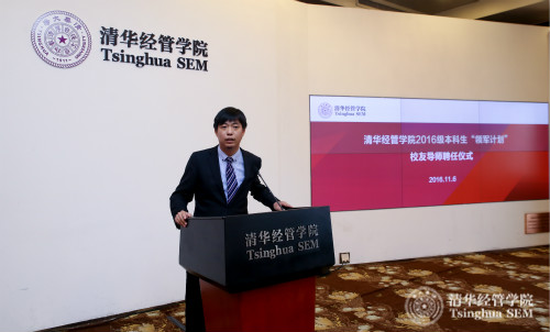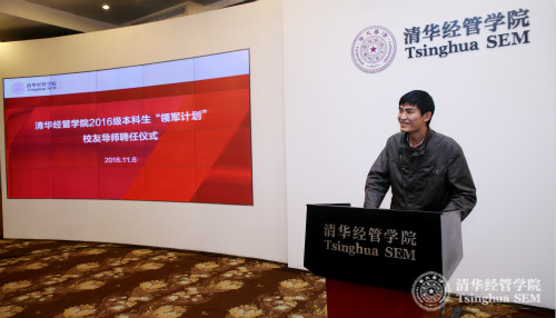 校友导师代表李扬帆(经2006)在清华经管学院2016级本科生“领军计划”校友导师聘任仪式上发言