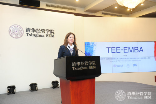 清华经管学院党委书记高建教授在致辞中说,“由清华经管学院与法国国立路桥大学、法国国立民航大学联合开办的TEE-EMBA项目是三所院校的首次合作,是中法两国在科技界和教育领域的一项创举,也是中法两国建交五十周年的见证。”他还表示,TEE-EMBA项目至今已经成功举办三期,2016级的课程在原有课程体系的基础上大胆创新,利用清华经管教学资源大平台的优势,将项目涵盖的工商管理类课程与清华经管EMBA教育进行整合,借鉴EMBA教育“天、地、人、通”的教学理念,与EMBA项目资源共享的同时,发挥国际合作项目的优势,充分将中西方管理理念融会贯通,帮助学生建立全球化的视野,从国际视角聚焦中国,乃至整个亚洲的发展。