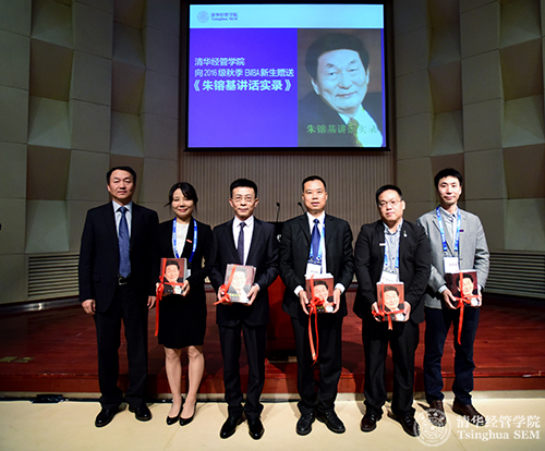 清华经管学院党委书记高建教授向2016级EMBA新生代表赠送《朱镕基讲话实录》