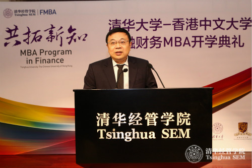 香港中文大学商学院院长陈家乐教授首先致辞。陈院长指出,香港中文大学商学院与清华经管学院在学界与业界都享有盛誉,FMBA项目依托两校商学院的合作,既是迈向国际化的重要一步,也是中港商业高等教育的开创之举。