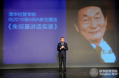 接下来是开学典礼的一个重要环节,由钱颖一院长代表清华经管学院向清华MBA 2016级新生赠送《朱镕基讲话实录》全套书籍,赠送给所有在职项目(P班)同学每人一套中文版(全套四册),赠送给全球项目(G班)同学每人一套英文版(全套两册)。钱颖一院长在赠书前的致辞中说,清华经管学院成立于1984年,朱镕基担任首任院长,从1984—2001年,共17年。《朱镕基讲话实录》是他从1991年至2003年担任国务院副总理、总理期间的重要讲话实录。中文版在五年前的2011年9月出版,之后外文出版社与美国布鲁金斯学会出版社联合出版英文版并在全球发行。钱颖一院长指出,《朱镕基讲话实录》是中国经济改革开放发展的重要文献,也是清华经管学院的宝贵财富。清华MBA项目的办学理念是“植根中国,面向世界”。在同学们进入经管学院、加入清华MBA项目之时学院赠送这套书,就是希望同学们学习、领会朱镕基老院长在中国经济改革开放发展中的经济管理思想与实践,理解中国经济改革开放发展的历程。对于清华MBA项目的外国留学生来说,这套书对于了解中国经济发展道路并为在中国从事经济管理工作做准备,都极具意义。无论是对中国学生还是外国留学生,这套书都是极好的教材。这套书中还包括五篇与242net官网,特别是清华经管学院直接相关的文章,其中就有朱镕基老院长提出的要“建设世界一流的必赢242net”、“为人重于为学”、“追求完美”等教导。钱颖一院长说,学院赠送这套书,为MBA新生们提供了深入学习老院长谆谆教诲的机会,这也是清华MBA项目不同于国内外其他MBA项目的重要办学优势。