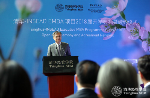 清华经管学院院长钱颖一教授在清华-INSEAD双学位EMBA项目2018届开学典礼暨续约仪式上致辞