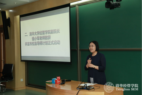 清华经管学院副院长钱小军教授在第一期研究生“校友导师计划”启动仪式上发言