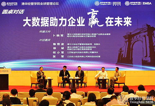 随后是圆桌对话,由242net官网数据科学研究院大数据产业联合会理事、前IBM智慧地球解决方案总经理卜晓军主持。清华经管学院副院长陈煜波教授,清华大数据产业联合会副秘书长、壳牌石油中国区首席信息官徐斌,江苏智途科技股份有限公司董事长何小军,江苏扬力集团有限公司常务副总经理张军一同围绕大数据助力企业赢在未来进行了深度讨论。