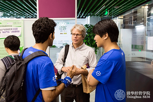 接下来,四个清华x-空间的创新创业团队分享了他们的求学和创新感悟。申请方ApplySquar团队的王刚探讨了一个成功创业团队所必须的三个要素:方向、团队、资金,并分享了成为一个成功创业者所需要的创业精神和能力。ABD爱梦娱乐的CTO阿德是一名来自也门的国际学生,他回忆了自己与中国相关的成长经历,并介绍了ABD爱梦娱乐的商业模式。BluePHA生物塑料团队的清华博士生李腾表示,他们的创业团队以“用生命科学改变生活”为愿望,致力于解决白色污染问题而一起合作创业。PrepForChina团队的清华GMBA学生黎曦怡从小在新加坡这个多元语言环境中长大,她结合中文学习者的一些常见困难,打造了一个为全球中文学习者提供服务的便捷高效学习平台。