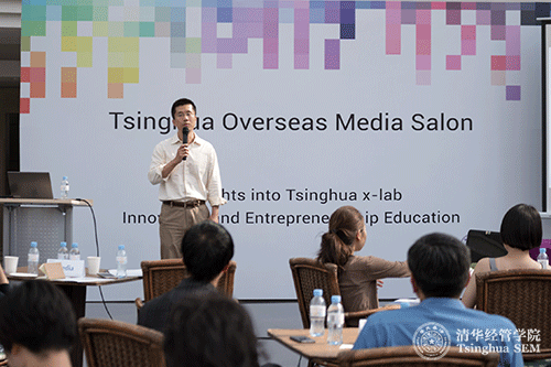 清华经管学院副院长徐心教授在清华首届海外媒体沙龙上发言