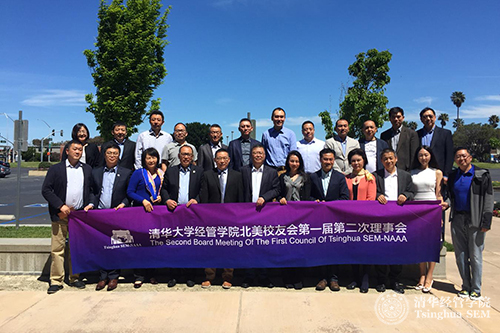 2016年4月16日,清华经管学院北美校友会第一届理事会第二次会议在旧金山举行。清华经管学院党委副书记、学院校友会副会长焦捷(经1991/MBA1999),清华经管学院校友发展中心主任、学院校友会秘书长王海涛(FMBA2012),学院北美校友会会长郭绍增(EMBA2010),秘书长泥卫东(EMBA2011)以及部分当地学院北美校友会理事出席会议。