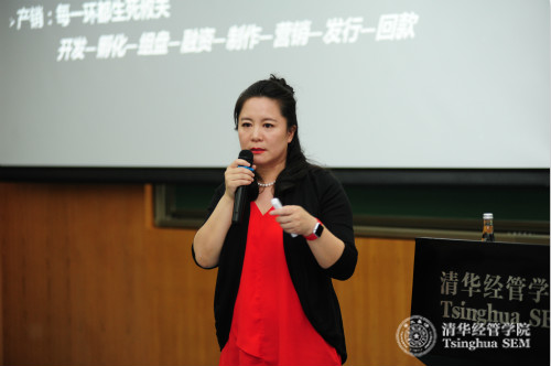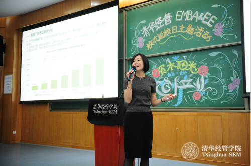 清华经管EMBA06级校友王颖在清华经管EMBA校友返校日主题活动“文化创意产业投资风向E智汇”上发言