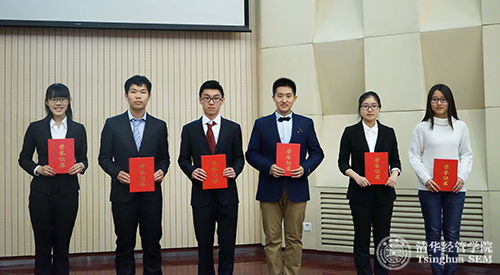 展示会的最后进行的是颁奖环节。综合前期调研报告和现场答辩表现,最终经53(2015级3班)团支部获得了综合一等奖,经54(2015级4班)团支部获综合二等奖,经56(2015级6班)团支部获得综合三等奖。除此以外,李逸伦、姚泽安获得清华经管学院“寒返调研优秀个人”称号,郭子捷支队获得了“寒返调研优秀支队”称号。经管学院学生工作组组长、金融系高峰教授为获奖的团支部和同学颁奖。