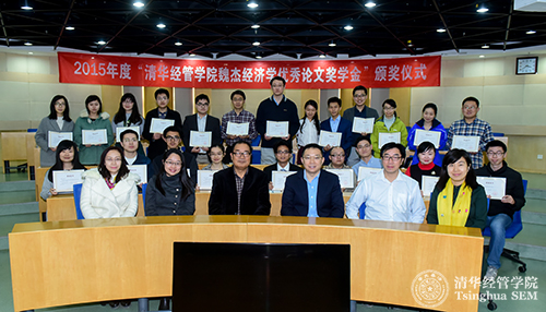 2016年3月17日,2015年度“清华经管学院魏杰经济学优秀论文奖学金”颁奖仪式在学院举行。奖学金的设立者、清华经管学院清华同方讲席教授、创新创业与战略系魏杰教授,学院党委副书记焦捷教授等参加活动。活动由学院研究生工作组组长杨思群教授主持。