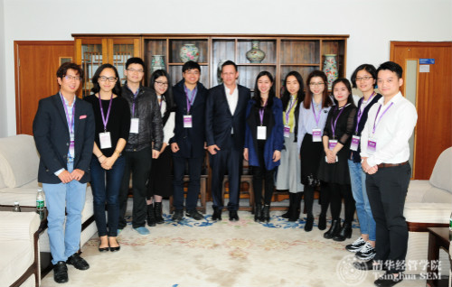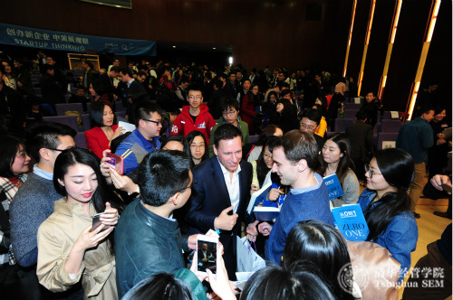 美国著名创业投资家彼得•蒂尔(Peter Thiel)在清华经管学院授课后与学生交流