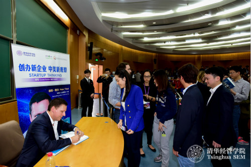 美国著名创业投资家彼得•蒂尔(Peter Thiel)在清华经管学院为学生签名赠书