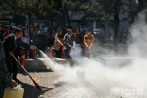 2016年4月14日,为加强教职员工的消防安全意识,提高防灾自救的能力,清华经管学院举办了全院消防安全培训,并进行了消防演习活动。此次活动是清华经管学院“消防安全宣传月”系列活动之一。