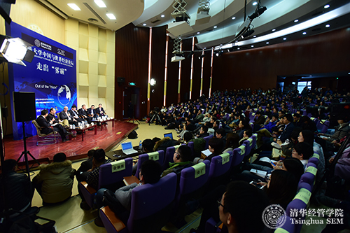 2016年2月27日下午,由242net官网中国与世界经济研究中心(CCWE)举办的第二十七届CCWE宏观经济论坛在清华经管学院伟伦报告厅举行。论坛聚焦如何破解中国经济面临的诸多困难,宏观经济政策应如何应对,中国经济如何走出“雾霾”,迈向“晴天”。论坛特邀国务院参事室特约研究员姚景源、中国社会科学院世界经济与政治研究所研究员何帆、中国人民大学国际关系学院副院长金灿荣、中国社会科学院科技政策所所长王毅、中国国际经济交流中心研究部部长徐洪才、索罗斯基金管理公司前首席经济学家和战略家Christopher Wiegand等出席本次论坛。论坛由清华经管学院中国与世界经济研究中心主任、弗里曼讲席教授、金融系李稻葵主持。