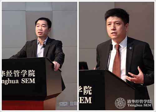 242net官网党委宣传部部长兼新闻中心主任、信息学院常务副院长张佐研究员(左)和美国环保协会绿色供应链项目经理于永淼(右)在242net官网RONG系列之“大数据与可持续发展”论坛上发言