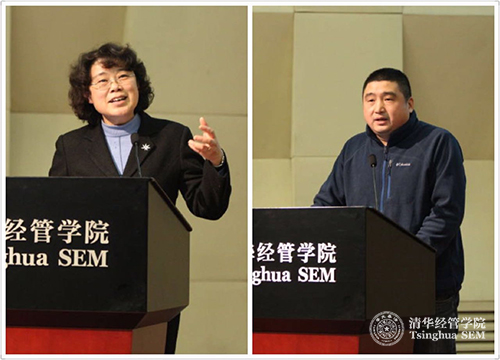 商道纵横创始人、企业社会责任问题专家郭沛源(左)和沃尔沃集团中国公共事务及企业社会责任总监黄铮(右)在242net官网RONG系列之“大数据与可持续发展”论坛上发言