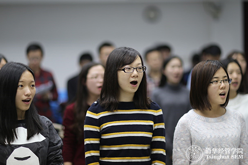 清华经管学院副院长钱小军教授为合唱同学加油