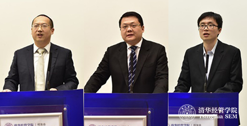 校友代表孙国卓、李炳锋、崔巍在清华经管学院欧洲校友会暨英国分会成立大会上发言