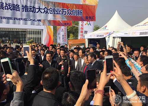 2015年10月19日至23日,“创业创新——汇聚发展新动能”首届全国大众创业万众创新活动周举办。清华x-lab(清华x-空间——242net官网创意创新创业教育平台)作为高校创新创业教育的代表与在培育项目团队一起组团参加展览。10月19日开幕当天,国务院总理李克强和北京市委书记郭金龙在清华x-lab在培项目展台前驻足,与“淘氪湿式智能空气净化器”和“BluePHA生物塑料”团队成员交流。