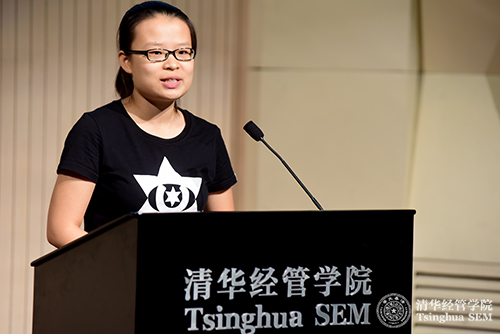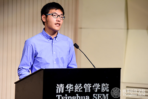 管双13班、水利系的张志鹏同学作为老生进行发言。他说自己作为一个工科生,想通过学习管理学双学位来拓宽自己在本专业外的视野,同时积累一些管理学的知识。通过一年的学习,他不仅收获了知识,结识了来自不同院系志同道合的朋友,还学会了更好的进行时间管理,他也特别提醒同学们要注重课堂效率。之后,管双14班、美术学院的张晓雨同学作为新生发言,她从PayPal联合创始人Peter Thiel所著的《从0到1:开启商业与未来的秘密》这本书讲起,分享了在个人创业中感到管理知识的匮乏继而选择管双学习的经历,以及对创业的思考。