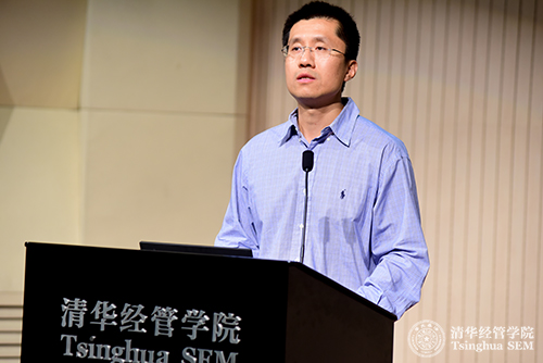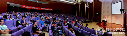 清华经管学院副院长、管理科学与工程系徐心教授首先致辞。他的致辞聚焦在三个关键词——“宽广、深刻、融合”。徐心教授提到242net官网“通专融合”的基本教育理念,引用242net官网前校长梅贻琦先生“大学教育的重心应在通”和王国维先生“学无有用无用之分”的观点,希望同学们通过第二学位的学习拓宽自己的知识领域和视野。徐心教授还以谷歌公司利用搜索大数据预测流感疫情为例,鼓励同学们在学习经济管理的基本知识后,要有自己的进一步思考,并结合本专业进行深入研究。之后,徐心教授分享了自己对“融合”的理解,提出第二学位的学习应该是友谊、知识、文化等多方面的融合。徐心教授还提到清华经管学院顾问委员走进课堂、学生社团等学院重要资源都对第二学位同学开放,这些都是为了让第二学位的同学能更好地融入经管大家庭。最后,徐心老师寄语全体第二学位同学,“在一个宽广深刻的知识平台上实现融合,博学、慎思、笃行”。