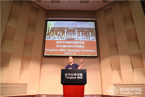 2015级在职班(P4班)新生刘牧晴在发言中说,在正式开学前,线上课程、定期作业、考试以及管理实战模拟课程(TechMark)早已纷至沓来,新生们真切窥见清华MBA的最优教学资源和魔鬼式的动感节奏。如今每位同学带着工作经验、社会阅历入读清华MBA,追求成绩并非唯一,开阔的平台、强大的师资、创新的教学、自强不息的精神乃至薪火相传的校友文化,都将成为未来同学们努力拼搏、光耀清华、奉献社会的动力源泉。