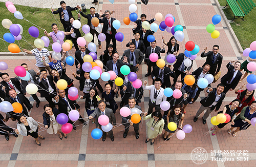 最后,同学们在清华经管学院的小花园里放飞气球,对着天空许下心愿,满怀憧憬与希望。初夏的清华园里,阳光灿烂,芳草如茵,处处弥漫着青春和朝气。TIEMBA大家庭的新成员们在清华园开始了新的征程。(供稿:EMBA教育中心责编:程绍荣)