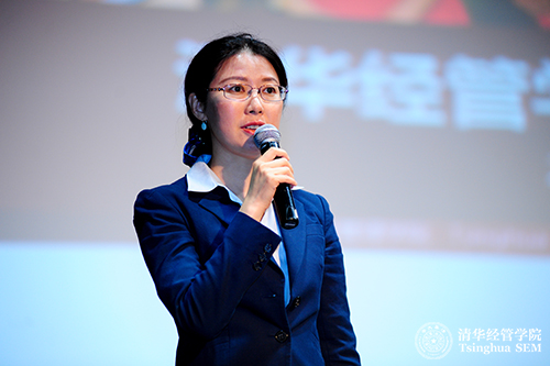 2013级清华MBA全球项目林开,以自己8年职业道路上面对商业痛点的迷茫作为切入点,谈到入读清华MBA后的一次麦肯锡课程,彻底颠覆了自己原有的商业价值观,深刻认识到互联网行业面临的重大商业模式的变革,并在实习实践中深刻体验这种变革所带来的颠覆性影响,从此确定了自身职业生涯的转型方向。她还介绍了在波士顿的百森商学院(Babson College)海外交换学习期间,自己成功拓展泰餐O2O商业模式的故事。她表示,经过两年学习,自己已经懂得如何面对事业生活中的迷茫、挣扎与困惑,这是入读清华MBA的最大收获与价值。