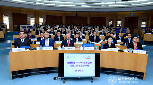 清华经管学院与交通银行的合作已有近10年,此次开办的高管培训课程是有史以来培训规模最大,规格最高的一次。为期5天的培训课程将包含新常态下的中国宏观经济形势,大数据环境下的商业银行创新与变革,领导力开发与实践等内容。学员们在聆听学院教授的最新研究与独到观点的同时,也将分小组进行深入讨论,把所学知识真正转化为交行转型发展的动力。(供稿:高管培训中心责编:张勇峰)