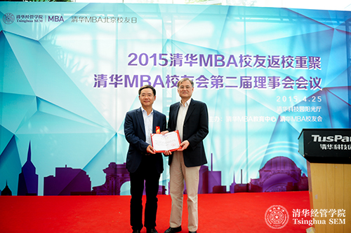 2015年4月25日,清华MBA校友会2015年理事大会暨第二届理事会会议在清华科技园召开。会议审议了章程修订案和理事会推荐名单,选举1997级校友、启迪控股总裁王济武担任新一届会长。首任理事长、清华经管学院院长钱颖一,副院长郦金梁出席会议。钱颖一院长为第二届理事一一颁发证书。会议由理事会秘书长姜培兴主持。
