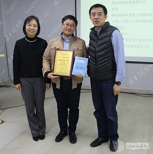 展示结束后,清华x-lab执行主任毛东辉与各个创业团队的创业导师一起,为创业团队颁发结业证书。淘气宝智能空气净化器和送姜钱包两个创业团队通过现场投票分获最佳创新奖和最佳人气奖。
