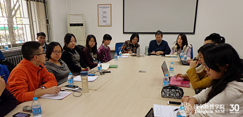 本次会议的讨论主题是通识教育课程建设,针对这一主题,不同年级的同学提出了不同的建议和看法,问题主要集中在授课环节和考核环节。同学们希望通识课程老师在授课方式、内容安排及考核标准上能够更贴近经管学生的实际情况,平行课堂的授课教师在最终的成绩评定上能够尽量统一标准,同时希望学院能够在课程的选择和时间安排上给同学更多的自由。随后,委员们对通识教育所承担的价值塑造、能力培养和知识获取三个方面的作用展开热烈讨论,并提出个性发展中应充分发挥主观能动性的观点。会上还讨论了学分绩排名、英语课效果改进、学术氛围建设、导师制度、转系生学分压力、毕业生在保研及工作中的诚信约束等问题,并提出了改进教学咨询委员会运作机制的建议。钱小军教授和朱玉杰教授认真听取委员们的发言,并与大家分享对这些问题的看法,共同探讨可行的解决方案。