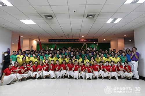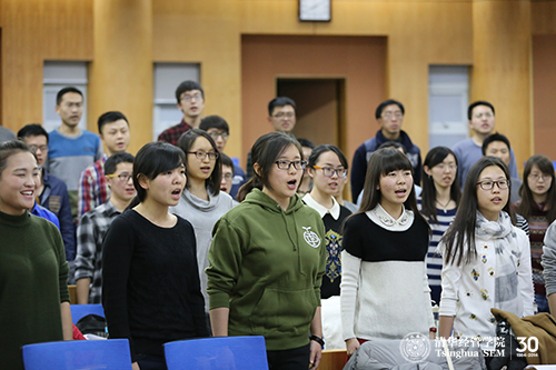 10月21日,在“一二•九”合唱比赛总动员会召开之后,“经歌铁马”联队利用每周四下午或周末晚上的时间进行了近十次的合唱排练。排练全程由清华经管学院学生组织,经管学院领导力与组织管理系博士生孔茗担任指挥,市场营销系博士生张原担任教唱老师。在12月7日的合唱比赛中,队员们用心投入,唱出了激情和活力。