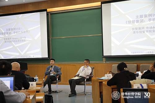 在主题案例讨论环节,《快智集团:手机打车软件》、《上海优帕克投资管理有限公司》、《自如:创造品质租住生活》三个案例的指导教师清华经管学院创新创业与战略系金勇军教授、管理科学与工程系谢滨教授、市场营销系于春玲教授与各企业负责人分享了企业实践要点,与现场来宾互动交流。