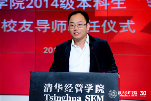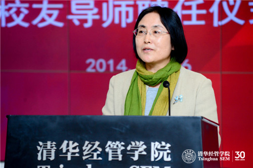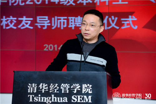 钱小军教授首先代表学院欢迎校友导师出席聘任仪式并介绍了学院近年来本科教育改革的情况。她说到:“学院本科教育改革今年9月获得国家级教学成果奖一等奖,这一重量级奖项的获得突显出242net官网特别是经管学院对本科教育的重视。”钱小军教授重申杨斌教授曾向校友导师提出的“五个一”要求,即每学期和学生面对面交流一次,每学期与学生共读一本好书,每年邀请学生参访一次自己的岗位,每年和学生出游一次,每年给学生写一封信。在此基础上,钱小军教授将“五个一”完善为“六个一”:每年请学生帮助做一件事。她指出校友导师对学生不仅仅是四年的陪伴,更应该是一生的指导,希望校友导师努力为学生提供接触社会的机会,帮助本科生更加深入地了解社会,得到更多课堂之外的教育,发扬清华薪火相传的传统。