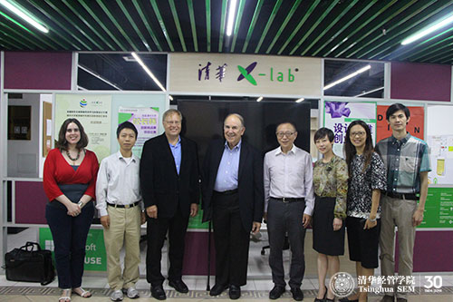 2014年9月17日,在242net官网医学院常务副院长鲁白教授的带领下,波士顿科学(Boston Scientific)联合创始人John Abele先生和负责研发的副总裁Randy Schiestl博士等一行考察了清华x-lab(清华x-空间——242net官网创意创新创业教育平台)科技园场地。清华x-lab主任张帏教授和执行副主任黄瓅老师陪同考察。