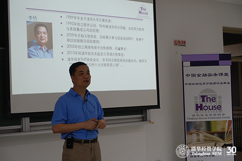 该课程在研究生院领导下,由经管学院金融硕士项目组织开课,15位讲师都是投资界资深人士,并是对清华有深厚感情的校友。有别于其他专业经济、金融、投资类课程,该课程定位于普及和实践,通过在买方投资机构的杰出校友对行业的解读、案例分享以及对投资机构的对接,使大家第一手了解投资机构的运作方式和最新的投资热点、理念,为个人投资和加入投资机构做好准备。