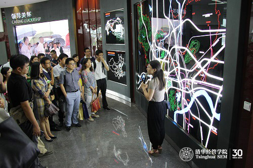 受访企业对清华MBA同学的到来表示了热烈的欢迎,四家受访集团公司均派出了集团副总级别的高管和同学们亲切交流,分享企业的管理案例和经验。阿里巴巴集团副总裁、大数据战略委员会会长车品觉先生围绕“流计算”及阿里巴巴在这方面的投入和应用进行展开,阐述大数据如何“无中生有”、如何把两个不相关的东西强相关起来进而实现大创新。在谈到管理实践方面,阿里巴巴人力资源部招聘总监杨舒女士说,“阿里巴巴的组织结构图是人的真实头像,不是职务和方框,突显个性化的标签,明确自身在企业里的坐标,强化网状的、动态考核的扁平管理。”