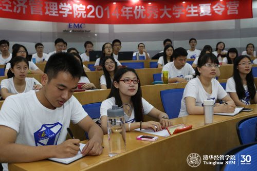 参加清华经管学院2014年优秀大学生夏令营的同学在认真听讲