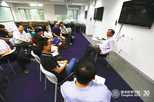 活动中,钱颖一院长还与同学们探讨了管理思想在推动市场营销、建立商业模式中的巨大作用。他说,在创业、技术与营销等各种资源整合的背后,是思维和价值观的触碰与冲撞,因此MBA的软技能课程至关重要。学院已经确定要在下学期在创业方面开设一门新课——《创业营销实务》。在进行校外资源整合和技术对接方面,钱颖一院长还与同学们探讨了如何利用清华x-lab这一强大平台,在原有两大战略伙伴清华科技园和清华企业家俱乐部的基础上,吸引更多战略伙伴,拓展新的商业模式和社会价值实现的方式和路径。