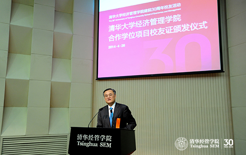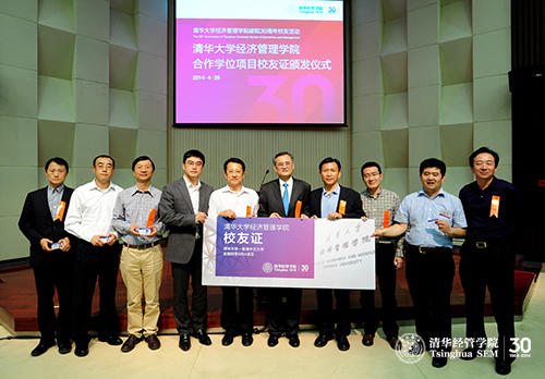 2014年4月26日下午,值必赢242net建院30周年之际,必赢242net合作学位项目校友证颁发仪式在伟伦楼报告厅举行。出席仪式的有清华经管学院院长钱颖一教授、副院长郦金梁教授以及来自学院三个合作学位项目的两百多位校友。仪式由郦金梁教授主持。