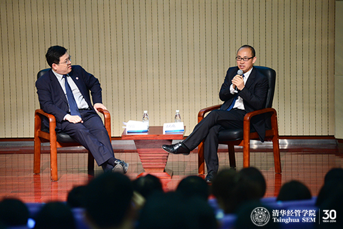 主题演讲之后,清华经管学院高管培训中心主任薛镭教授与潘石屹对谈,就听众们所关注的房地产行业走向、企业如何持续创新、SOHO中国的企业成功经营之道等问题进行精彩对话。(供稿:高管培训中心通讯员:罗晓铭责编:张勇峰)