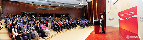 在开场致辞中,钱颖一院长代表学院向可口可乐公司的大力支持表示衷心感谢。他说:2011年,可口可乐公司董事长兼首席执行官穆泰康先生(Muhtar Kent)成为清华经管学院顾问委员会的海外委员。此后,穆泰康先生一直关心并支持学院的发展。2014年1月,我到亚特兰大拜访穆泰康先生,经商讨双方决定联合打造“可口可乐21世纪市场营销项目”,在未来十年里,双方将在师资发展、学生交流、研究项目、系列讲座等方面开展合作。