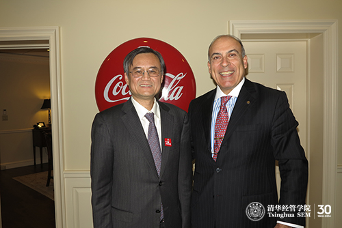 2014年1月,钱颖一院长(左)赴亚特兰大拜访可口可乐公司董事长兼首席执行官穆泰康先生(右)