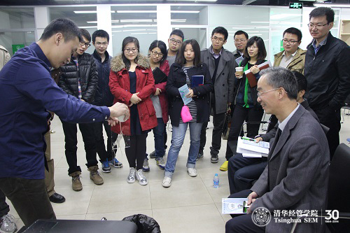中关村管委会副主任周国林参观和听完介绍后,谈到调研清华x-lab的几点感触:第一,交叉:清华x-lab的“x”寓意丰富,既可以表示“未知”和学科“交叉”,又可以表示清华x-lab未来发展的无限潜力。第二,年轻:清华x-lab服务于年轻人,是中关村的“梦想实验室”。近日,福布斯发布2014年度“中国30位30岁以下创业者”,其中近半来自中关村,他希望清华x-lab培养出更多的30岁以下创业人才。第三,国际化:清华x-lab在国际化方面已经做了很多工作,希望将来发挥更大的作用。随后,与会人员还共同探讨了清华x-lab未来的发展方向。