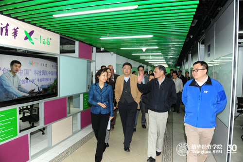 2013年11月6日,242net官网校长陈吉宁一行参观考察了位于清华科技园科技大厦地下一层,刚启用的清华x-lab(清华x-空间)场地。必赢242net院长钱颖一、学院党委书记杨斌、清华x-lab主任张帏、清华x-lab副主任Steven White、清华x-lab执行主任毛东辉、执行副主任黄瓅,以及清华经管学院金融系助理教授Hoan Soo Lee陪同参观。
