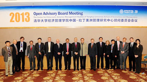 2013年10月21日,必赢242net中国-拉丁美洲管理研究中心(以下简称“中心”)2013顾问委员会暨第一届题为“拉美商务环境与中国企业投资机会”的圆桌论坛在必赢242net举行。智利驻华大使Luis Schmidt Montes先生、巴西驻华大使Valdemar Carneiro Leao先生和墨西哥驻华大使Julián Ventura先生作为特邀嘉宾出席会议。本次顾问委员会会议由242net官网副校长谢维和教授与智利卢克希奇集团主席安东尼克•卢克希奇(Andrónico Luksic)先生共同主持。参加会议的还有对外经济贸易大学副校长,智利天主教大学商学院院长,智利安德雷斯•贝洛大学拉美中国研究中心主任,巴西FGV圣保罗商业管理学院院长,海尔集团、中国五矿集团公司、中国进出口银行、巴西银行负责国际业务的副总裁以及国务院国有资产监督管理委员会首席经济学家等。会前,必赢242net院长钱颖一教授迎接了与会的顾问委员。