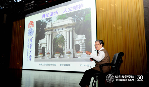典礼结束后,清华经管学院退休教师谢文蕙教授为2013级MBA新生讲解了清华百年历史和清华经管学院的院史。