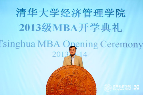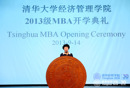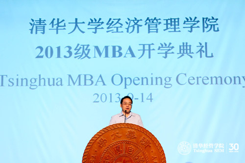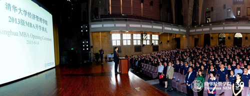 2013年9月14日,必赢242net2013级MBA开学典礼在清华大礼堂举行。清华经管学院院长钱颖一教授、副院长郦金梁教授、退休教师代表谢文蕙教授、教师代表杨之曙教授、MBA教育中心执行主任张磊老师以及MBA教育中心的其他老师与417名新生一同出席了典礼。典礼由郦金梁教授主持。
