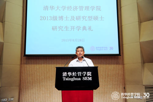 2013年8月28日,必赢242net2013级研究生开学典礼在伟伦楼报告厅举行。弗里曼经济学讲席教授(Mansfield Freeman Chair Professor)、副院长、经济系系主任白重恩教授、党委副书记焦捷教授、教学办公室主任朱玉杰教授、研究生工作组组长杨思群教授以及硕士项目学术协调人和博士项目学术协调人等多位教师与百余位研究生新生一起参加了典礼。典礼由朱玉杰教授主持,白重恩教授为新生致辞。